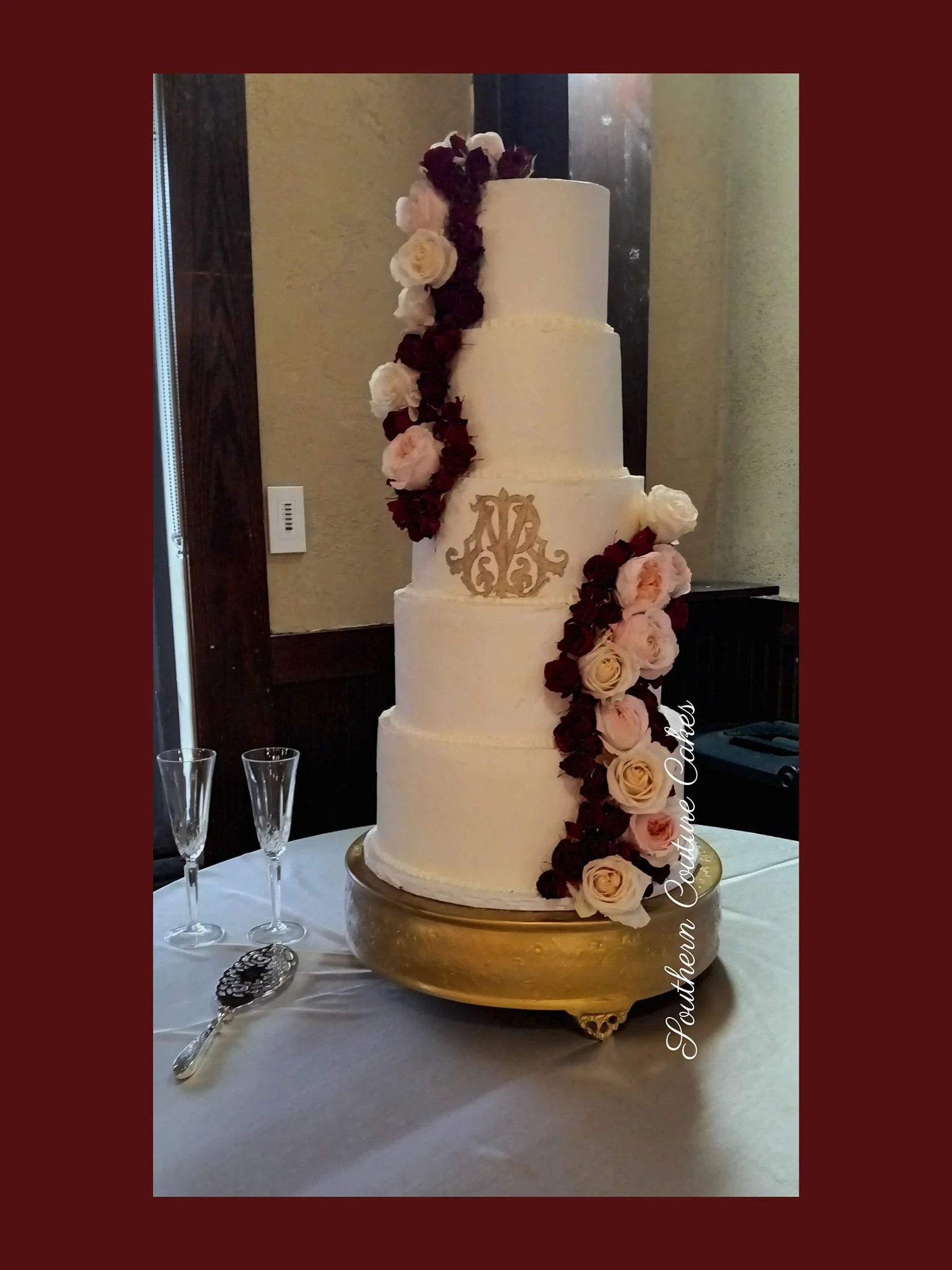 This elegant, 5-tier wedding cake size features (4) 4-layer tiers plus a 3-layer top tier. The diameter dimensions are 4”/6”/8”/10”/12”, making the top tier perfect to serve or save for your anniversary.